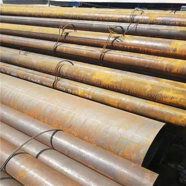 榆林gb3087无缝钢管要用钢锭或实芯管料经破孔制成毛管,随后经热扎、冷轧或冷拨制成。榆林gb3087无缝钢管在中国钢管业中具备重要的位置。据不完全统计,我国目前无缝管生产公司约240多家,无缝管机组约250多套,年产能力约450多万吨。从规格看,榆林gb3087无缝钢管的原料是圆管坯,圆管胚要经过切割机的切割制作成长短约为1米胚料,并经输送带送至溶炉内加温。钢坯被送进溶炉内加温,温度约为1200℃。燃料为氢气或乙炔。炉内温控是关键性的难题.圆管坯出炉后要经过压力穿孔机开展穿空。一般较常见的穿孔机是锥形辊穿孔机,这类穿孔机生产效率高,产品品质好,破孔扩径量多,可穿多种钢种。破孔后,圆管坯就先后被三辊斜轧、连轧或挤压。挤压后应脱管定径。定径机根据锥形钻头高速运转入钢胚打孔,产生钢管。钢管内径由定径机钻头的直径长短来决定。钢管经定径后,进入冷却塔中,根据喷水冷却,钢管经冷后,就要被校直。钢管经校直后由输送带送往金属探伤机(或压力试验)进行内部探伤。若钢管内部有裂痕,气泡等问题,将被检测出。钢管质检后还要通过严格手工选择。钢管质检后,用漆料喷上编号、规格、生产日期等。并由吊车吊入仓库里。